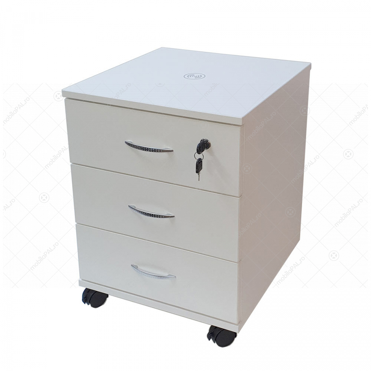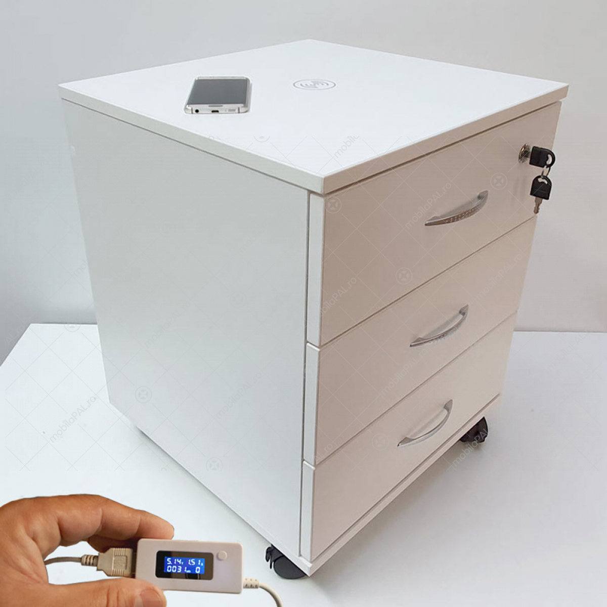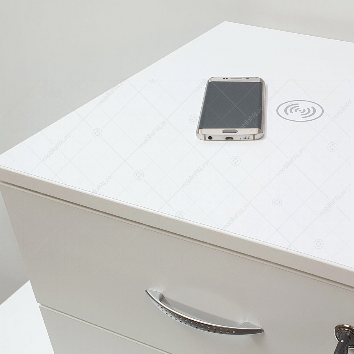 Rollbox cu 3 sertare si incarcare wireless de tip "Qi Charger", Alb perlat, 45 x 45 x 60h cm